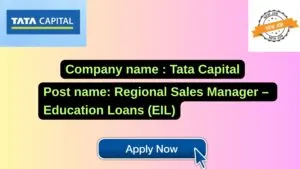 Tata Capital New Job : Apply for the post of Regional Sales Manager – Education Loans (EIL)