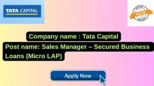Tata Capital New Job : Apply for the post of Sales Manager – Secured Business Loans (Micro LAP)