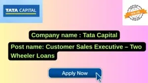 Tata Capital New Job : Apply for the post of Customer Sales Executive – Two Wheeler Loans
