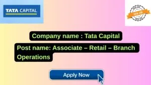 Tata Capital New Job : Apply for the post of Associate – Retail – Branch Operations