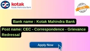Kotak Mahindra Bank New Job : Apply for the post of CEC – Correspondence – Grievance Redressal