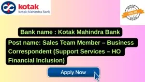 Kotak Mahindra Bank New Job : Apply for the post of Sales Team Member – Business Correspondent (Support Services – HO Financial Inclusion)