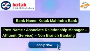 Kotak Mahindra Bank New Job : Apply for the post of Associate Relationship Manager – Affluent (Service) – Non Branch Banking