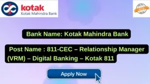 Kotak Mahindra Bank New Job : Apply for the post of 811-CEC – Relationship Manager (VRM) – Digital Banking – Kotak 811