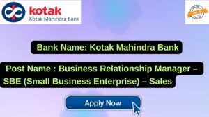 Kotak Mahindra Bank New Job : Apply for the post of Business Relationship Manager – SBE (Small Business Enterprise) – Sales