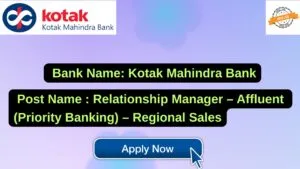Kotak Mahindra Bank New Job : Apply for the post of Relationship Manager – Affluent (Priority Banking) – Regional Sales