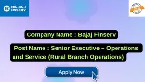 Bajaj Finserv New Job : Apply for the post of Senior Executive – Operations and Service (Rural Branch Operations)