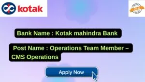 Kotak Mahindra Bank New Job : Apply for the post of Operations Team Member – CMS Operations