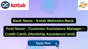 Kotak Mahindra Bank New Job : Apply for the post of Customer Assistance Manager – Credit Cards (Hardship Assistance Unit)