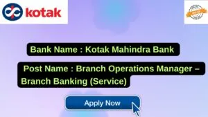 Kotak Mahindra Bank New Job : Apply for the post of Branch Operations Manager – Branch Banking (Service)