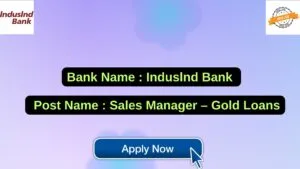 Induslnd Bank New Job : Apply for the post of Sales Manager – Gold Loans