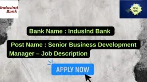 Induslnd Bank New Job : Apply for the post of Senior Business Development Manager – Job Description