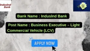 Induslnd Bank New Job : Apply for the post of Business Executive – Light Commercial Vehicle (LCV)