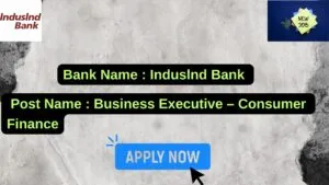 Induslnd Bank New Job : Apply for the post of Business Executive – Consumer Finance Division