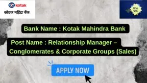Kotak Mahindra Bank New Job : Apply for the post of Relationship Manager – Conglomerates & Corporate Groups (Sales)