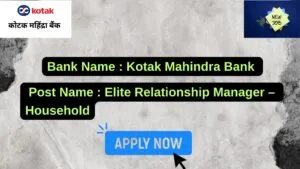 Kotak Mahindra Bank New Job : Apply for the post of Elite Relationship Manager – Household (Branch Banking | Relationship Management)