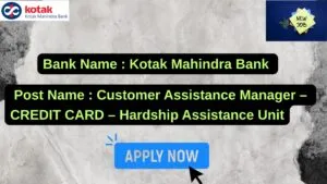 Kotak Mahindra Bank New Job : Apply for the post of Customer Assistance Manager – CREDIT CARD – Hardship Assistance Unit