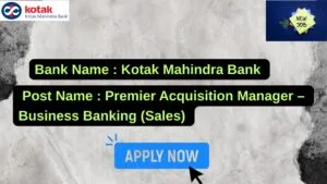 Kotak Mahindra Bank New Job : Apply for the post of Premier Acquisition Manager – Business Banking (Sales)
