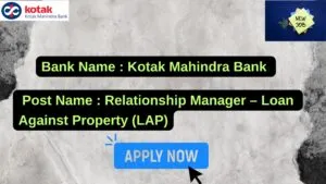 Kotak Mahindra Bank New Job : Apply for the post of Relationship Manager – Loan Against Property (LAP)