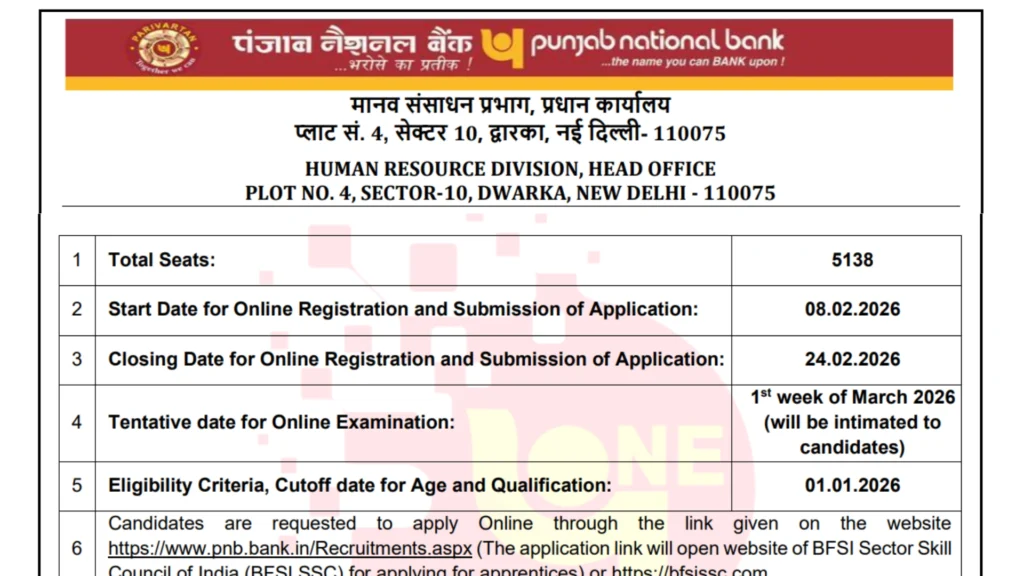 PNB Bank Apprentice Recruitment 2026 Notification PDF & Apply Online Form Link