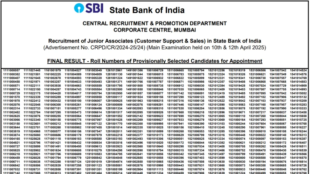 SBI Clerk Recruitment 2024 Download Result Link